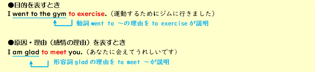 不定詞は「~すること」「〜するための」「~するために」などの幅広い使い方をします。