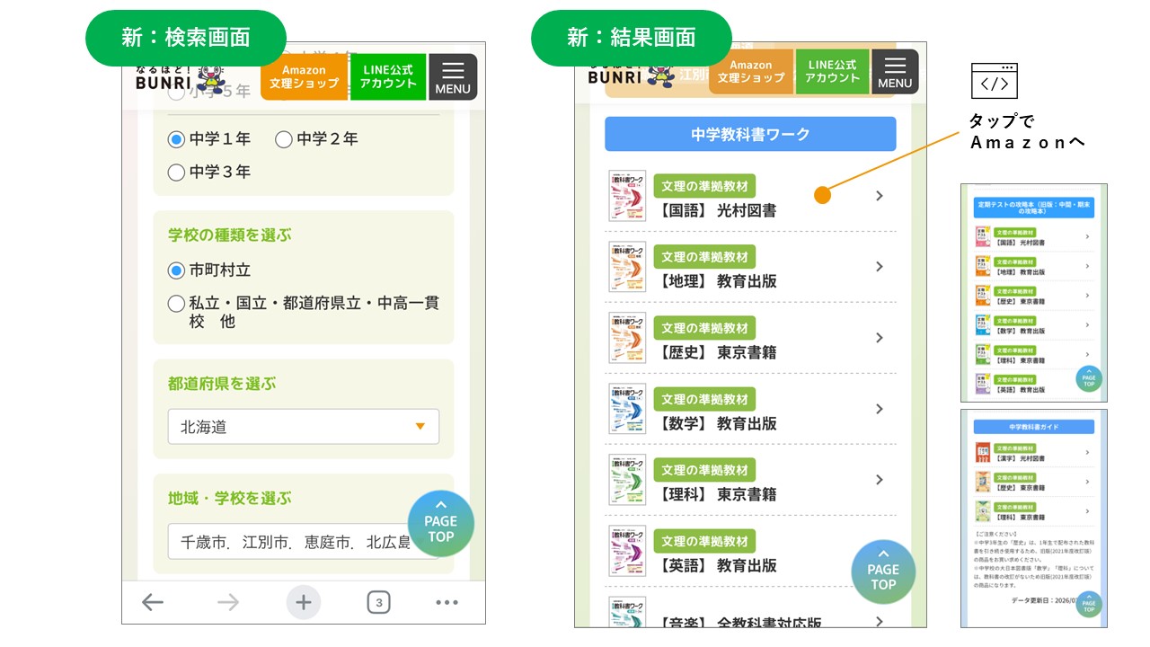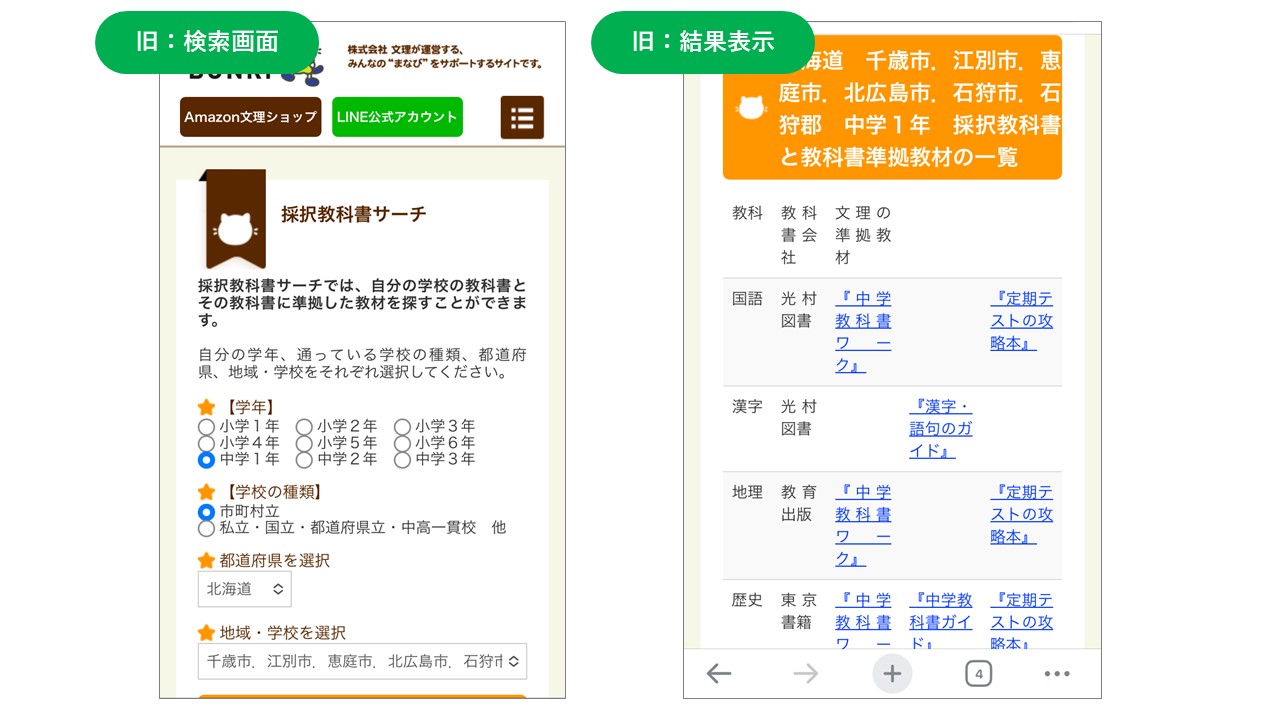 【リニューアルした「使用教科書サーチ」(スマホ版)】