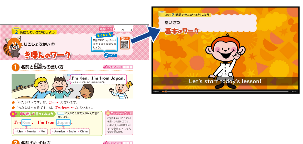 学年に合わせた構成で、アルファベットから会話練習まで学習することができます。
