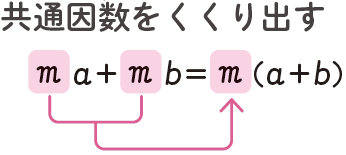 この式は、共通因数として数(係数)と文字の両方に着目します。