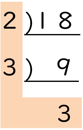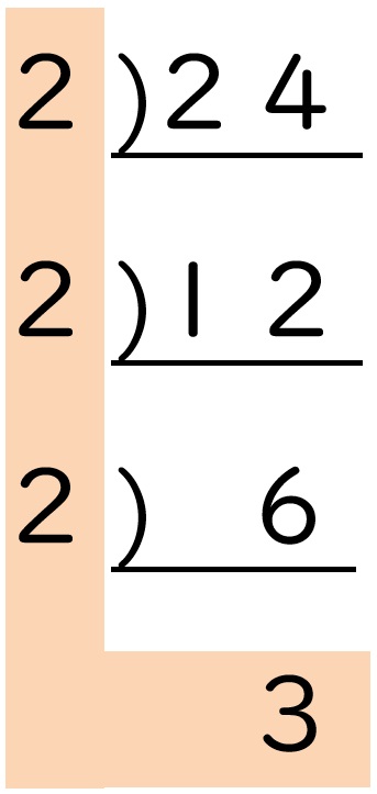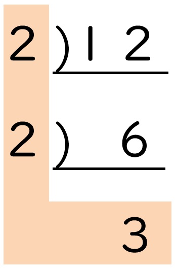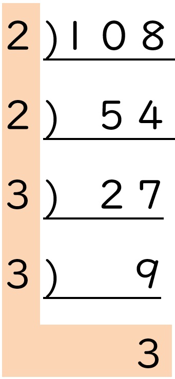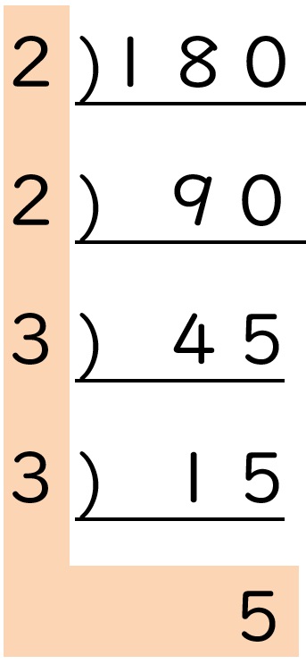 わり算の筆算を上下逆さまにしたような形を書くのが、素因数分解のコツです。