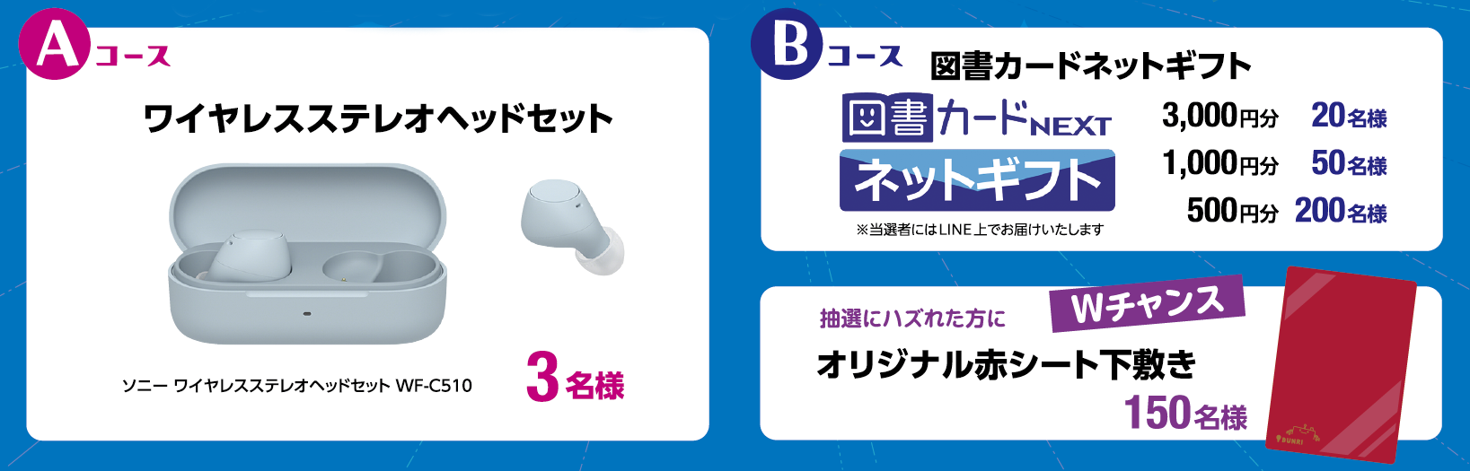 ワイヤレスステレオヘッドセットや図書カードネットギフトが当たる