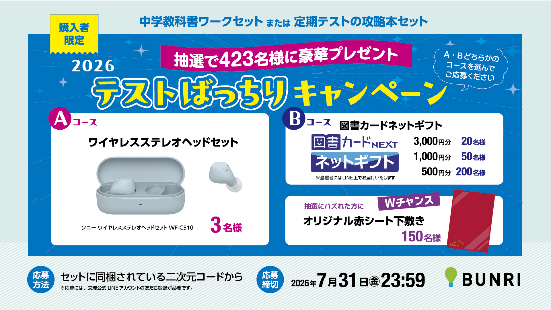 2026中学教科書ワークセット・定期テストの攻略本セット購入キャンペーン実施中!