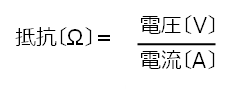 この抵抗は、数値で表すことができます。抵抗は、電圧〔V〕を電流〔A〕で割った値で、単位はオーム〔Ω〕です。
