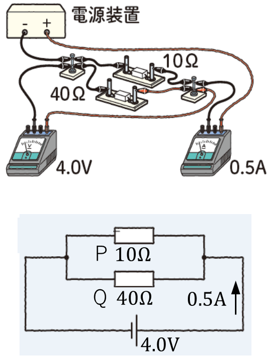 ・Qを流れる電流は4.0〔V〕÷40〔Ω〕=0.1〔A〕